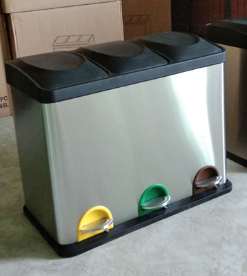 • 產品名稱:室內三分類不銹鋼腳踏垃圾桶