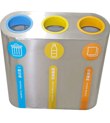室內(nèi)斜面投口地鐵不銹鋼三分類垃圾桶批量生產(chǎn)圖